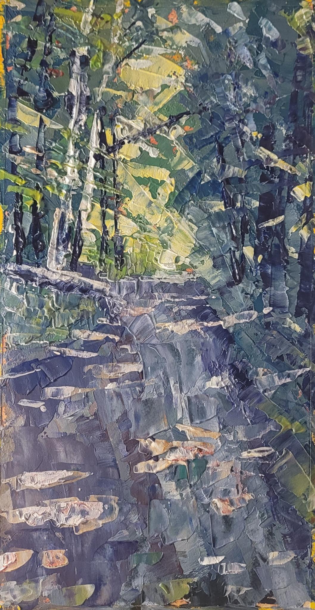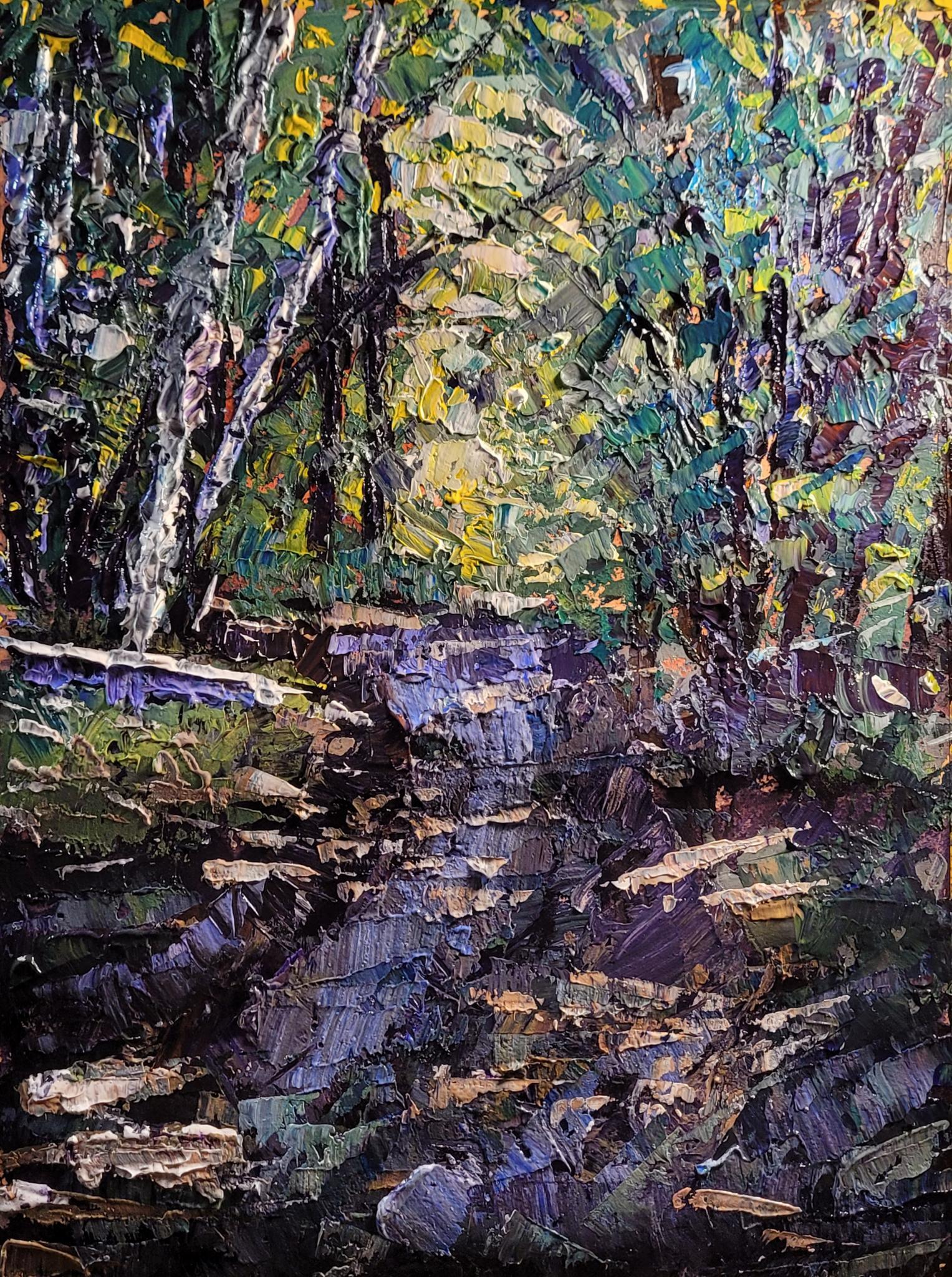 This portfolio shares new original works, the latest of which and moving forward, are made with sustainable, nontoxic, vegan Natural Earth Paint (naturalearthpaint.com), as well as studies I created in online classes I took with established artists during covid lockdown. In many of those early classes, I experimented with whether principles being taught with oil painting as the medium could be executed in watercolor since I started out exploring watercolor as the potential medium to illustrate my Golden Threads of Good Books for Children. In later classes, I discovered that my magical art wand to enter the world of my true voice is the palette knife.